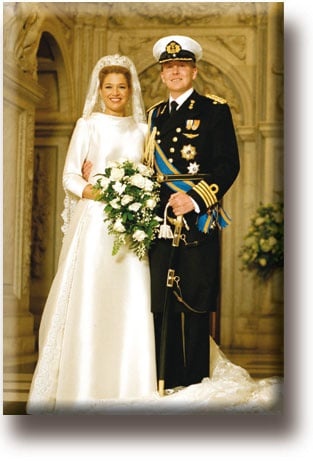 Koelkastmagneet, Zijne Majesteit Koning Willem-Alexander en Hare Majesteit Koningin Máxima. Foto: bruiloft, 2 februari 2002.