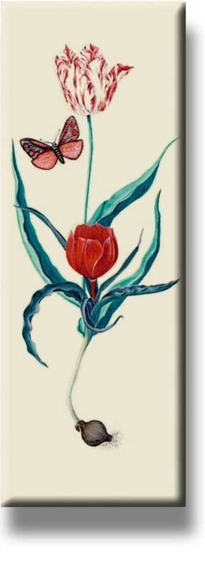 Een koelkastmagneet, altijd leuk om te zien en om te krijgen. De koelkastmagneet blijft plakken op je koelkast, whiteboard en ieder ander oppervlak dat ijzer, nikkel of kobalt bevat. Deze magneet heeft een hoge kwaliteit afdruk van twee tulpen en een vlinder.
