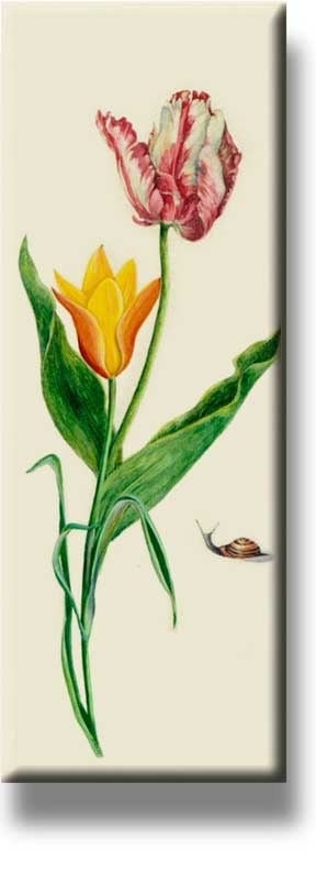 Een koelkastmagneet, altijd leuk om te zien en om te krijgen.De koelkastmagneet blijft plakken op je koelkast, whiteboard en ieder ander oppervlak dat ijzer, nikkel of kobalt bevat. Deze magneet heeft een hoge kwaliteit afdruk van twee tulpen en een slak.