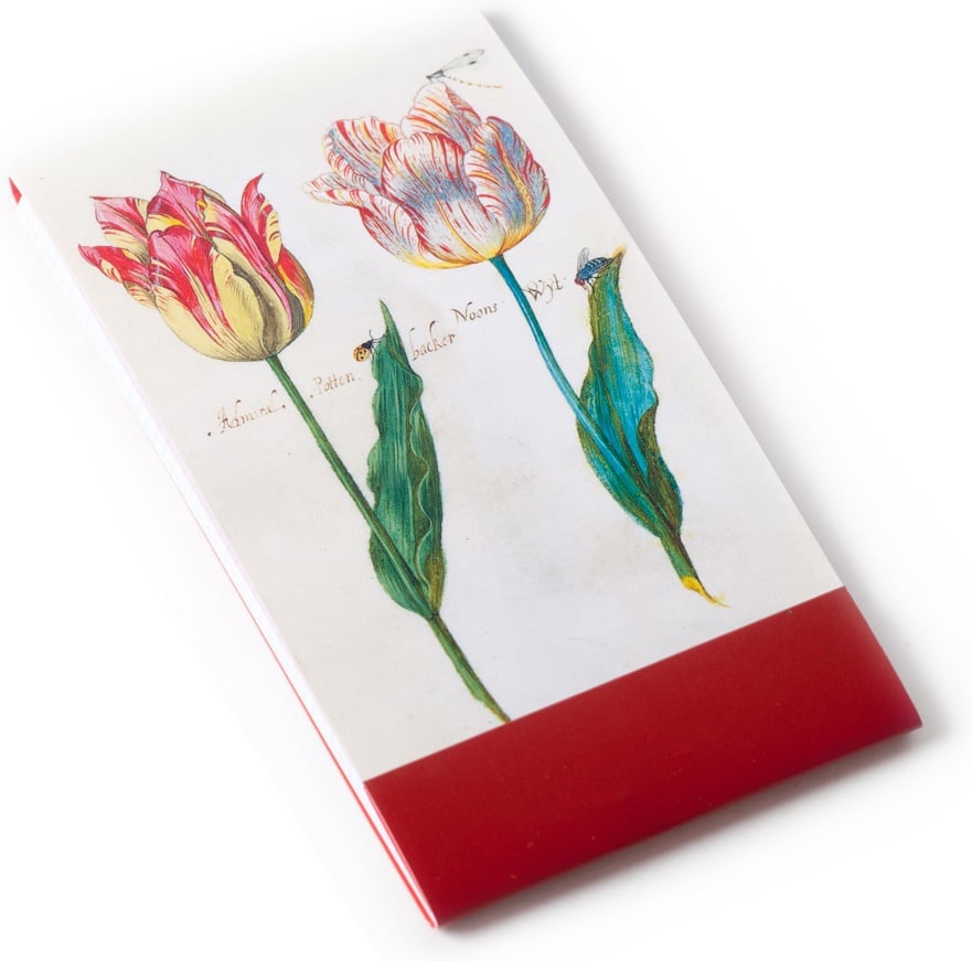 Notelet, Twee tulpen met insecten, Jakob Marrel (1613 - 1681)