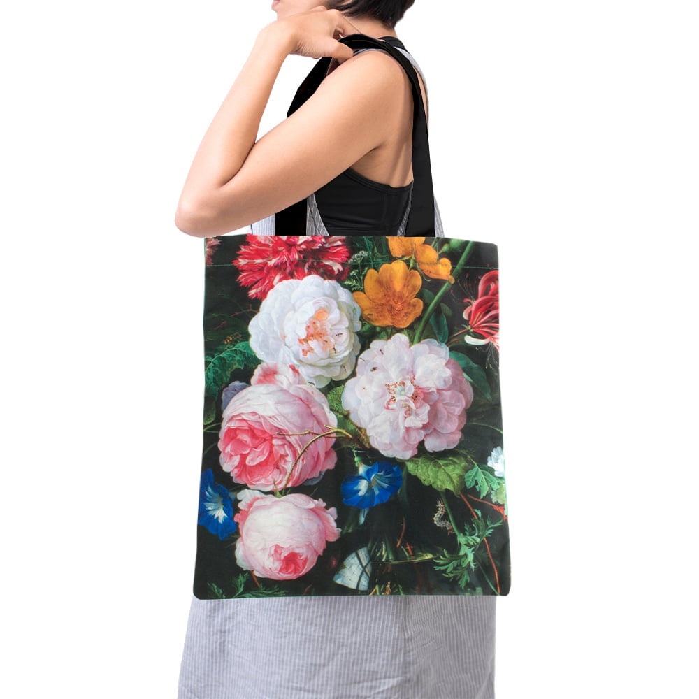 Een mooie, gevoerde stevige katoenen tas van hoge kwaliteit: hiermee wil je gezien worden: een mooi museum gift. De reproductie op deze kwaliteits tas is van het beroemde schilderij van De Heem, Bloemstilleven.