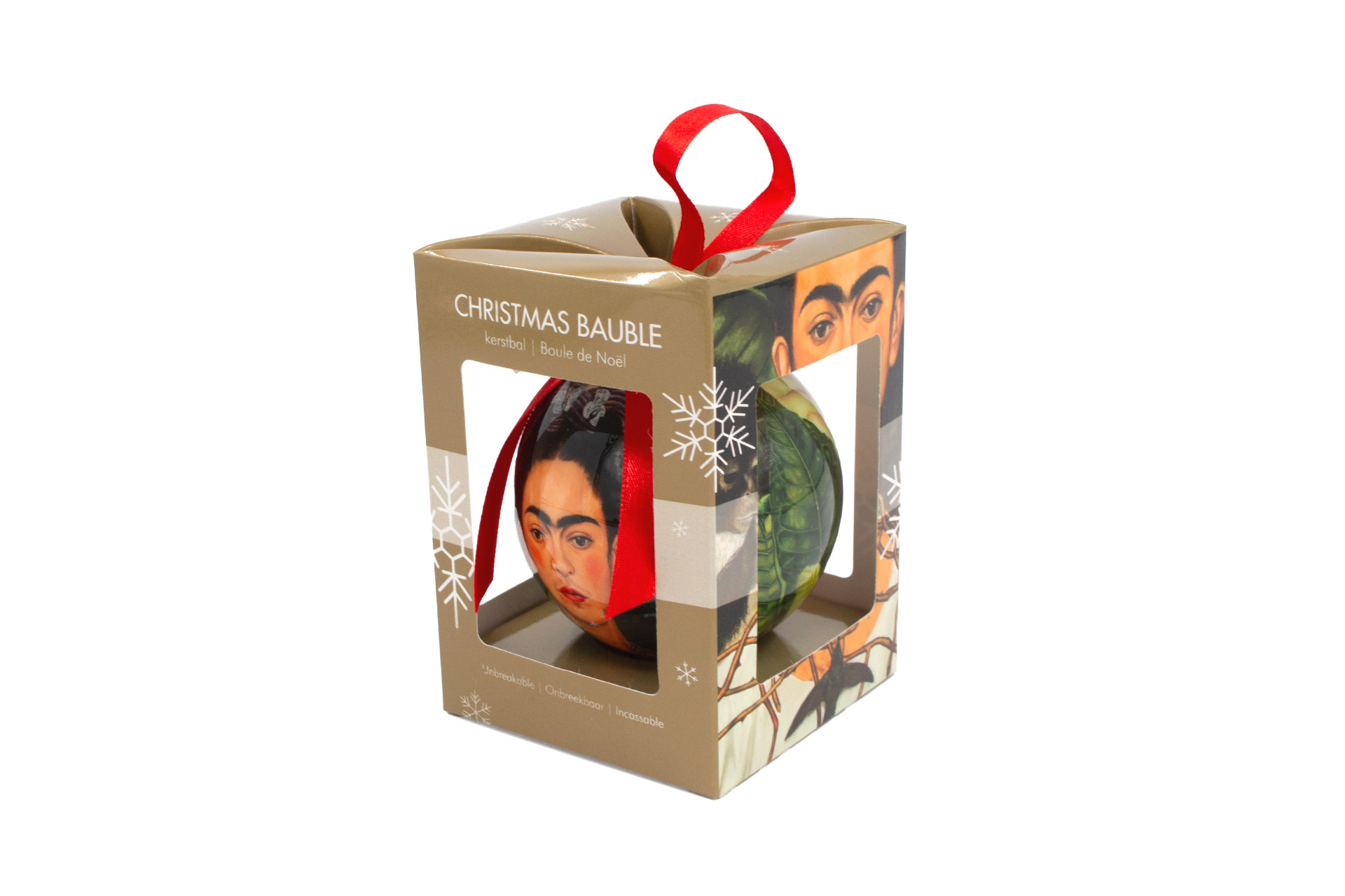 Een mooie kerstbal met een afbeelding van een zelfprotret van Frida Kahlo in een mooie kado verpakking. Een leuk kado voor de feestdagen en/of een leuke aanwinst voor uw museumwinkel. De diameter is 7 cm.