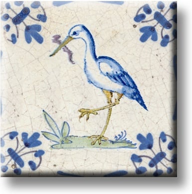 Koelkastmagneet, Delfts blauwe tegel, Ooievaar