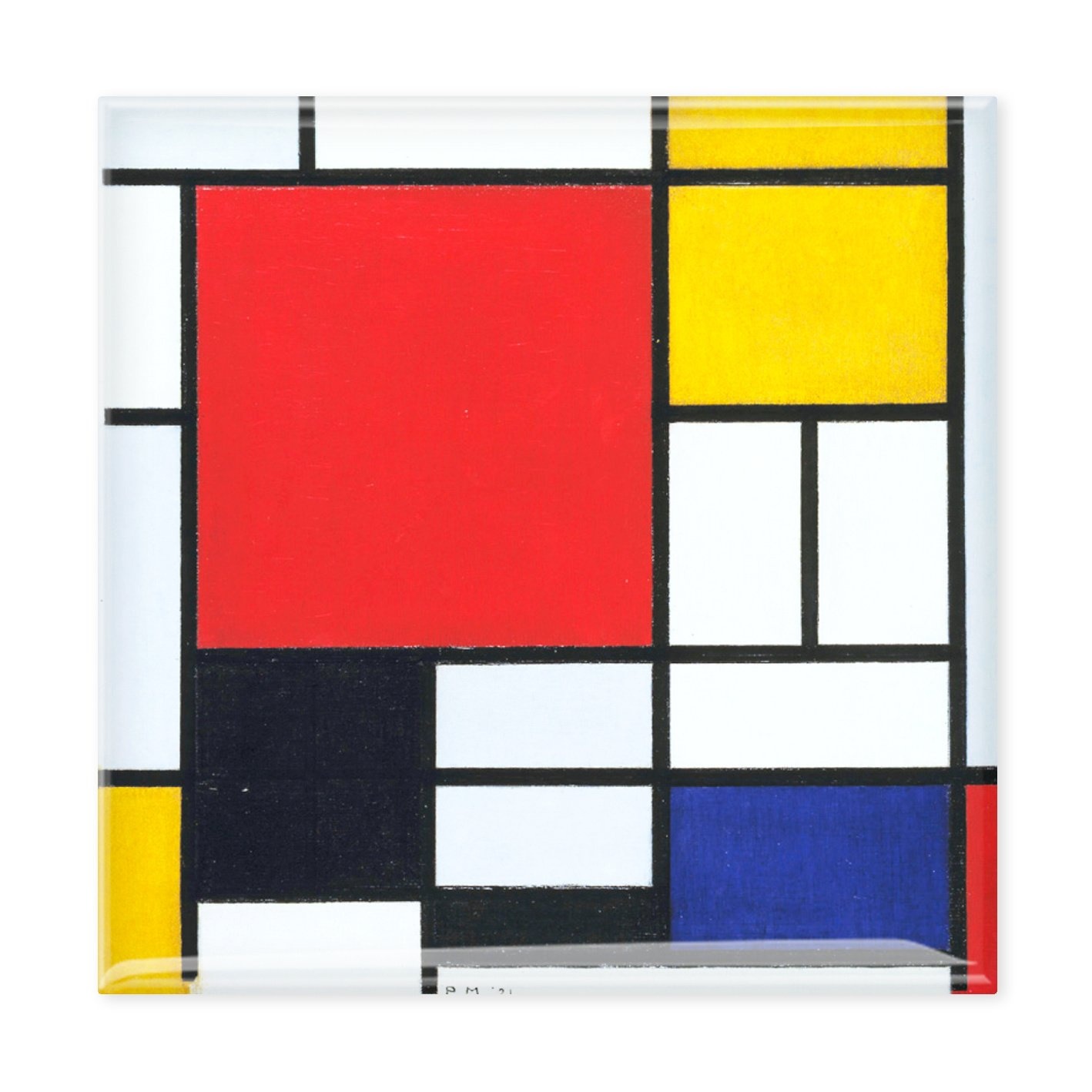 Koelkastmagneetjes met een selectie van Piet Mondriaan. De selectie bestaat uit 3 magneetjes voor op de koelkast.