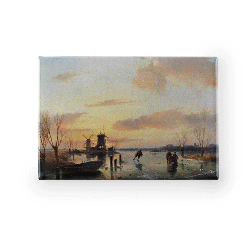 Een koelkastmagneet, altijd leuk om te zien en om te krijgen. De koelkastmagneet blijft plakken op je koelkast, whiteboard en ieder ander oppervlak dat ijzer, nikkel of kobalt bevat. Deze magneet heeft een hoge kwaliteit afdruk van een geschilderd winterlandschap, geschilderd door de Nederlandse landschapsschilder, etser en lithograaf Andreas Schelfhout in 1847.