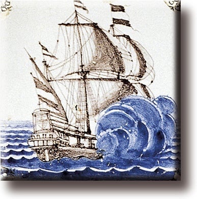 Koelkastmagneet, Delfts blauwe tegel, Oost Indië Schip
