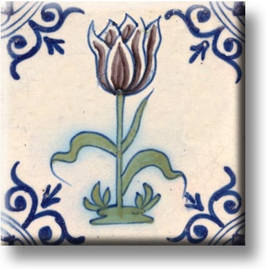 Ijskastmagneet, Delfts blauwe tegel, Aubergine kleurige tulp