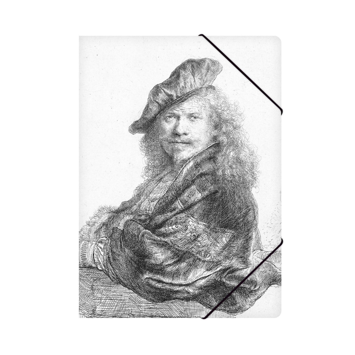 Map met elastische sluiting, A4, Zelfportret leunend op stenen dorpel, Rembrandt
