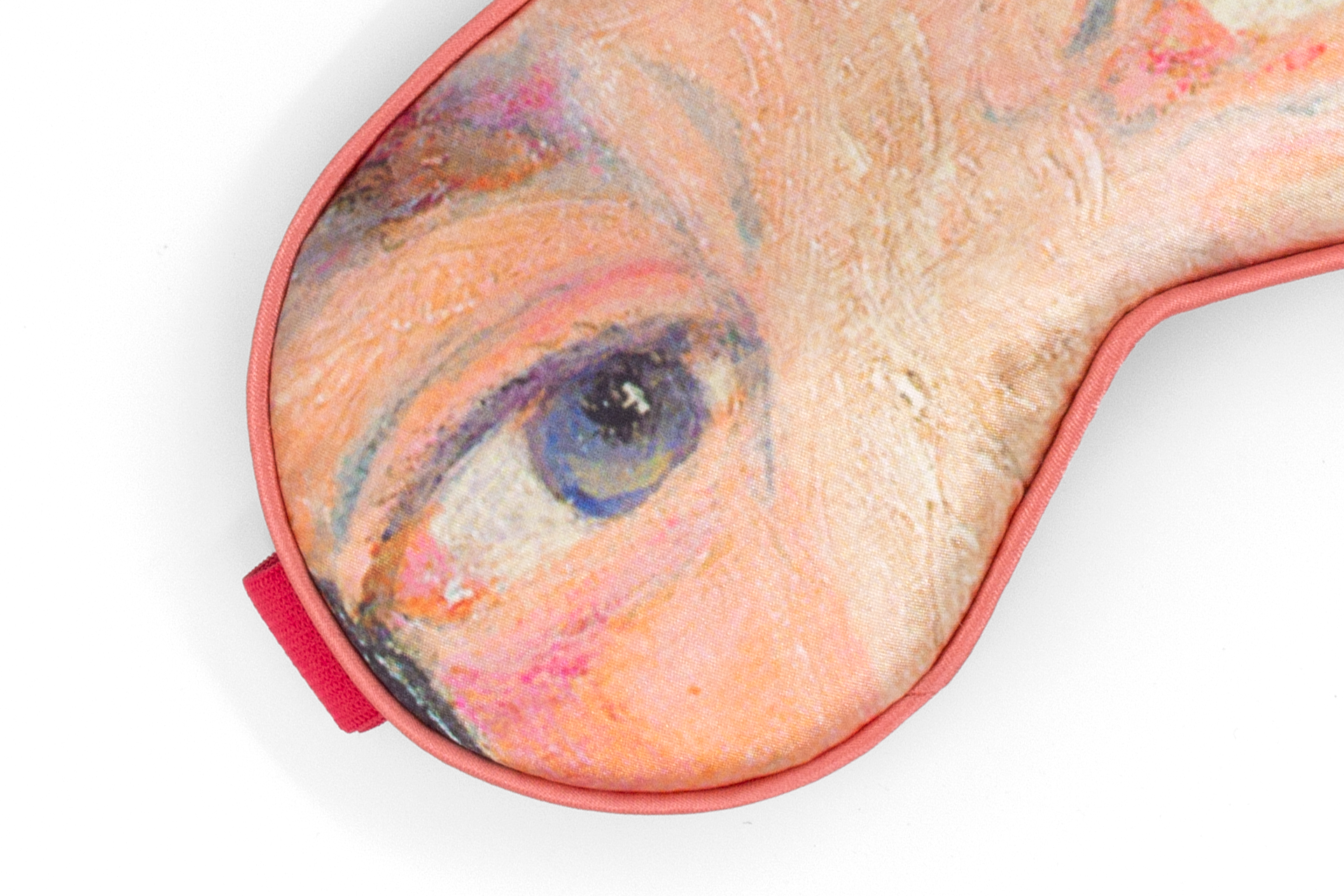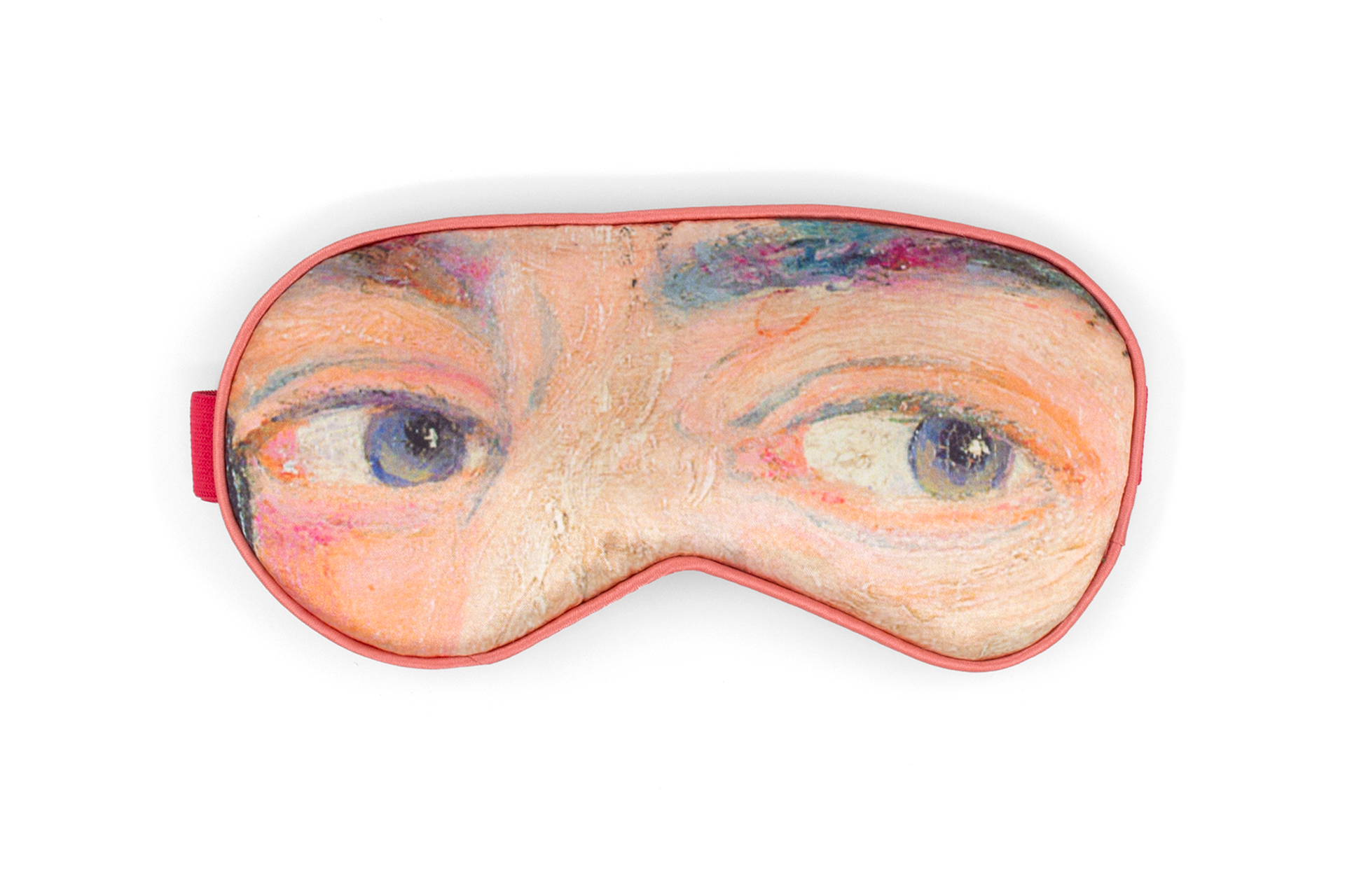 Het slaapmasker toont een opvallende weergave van Ensor’s zelfportret met maskers, met levendige kleuren en expressieve details. Zo combineer je kunst en luxe in één praktisch accessoire.