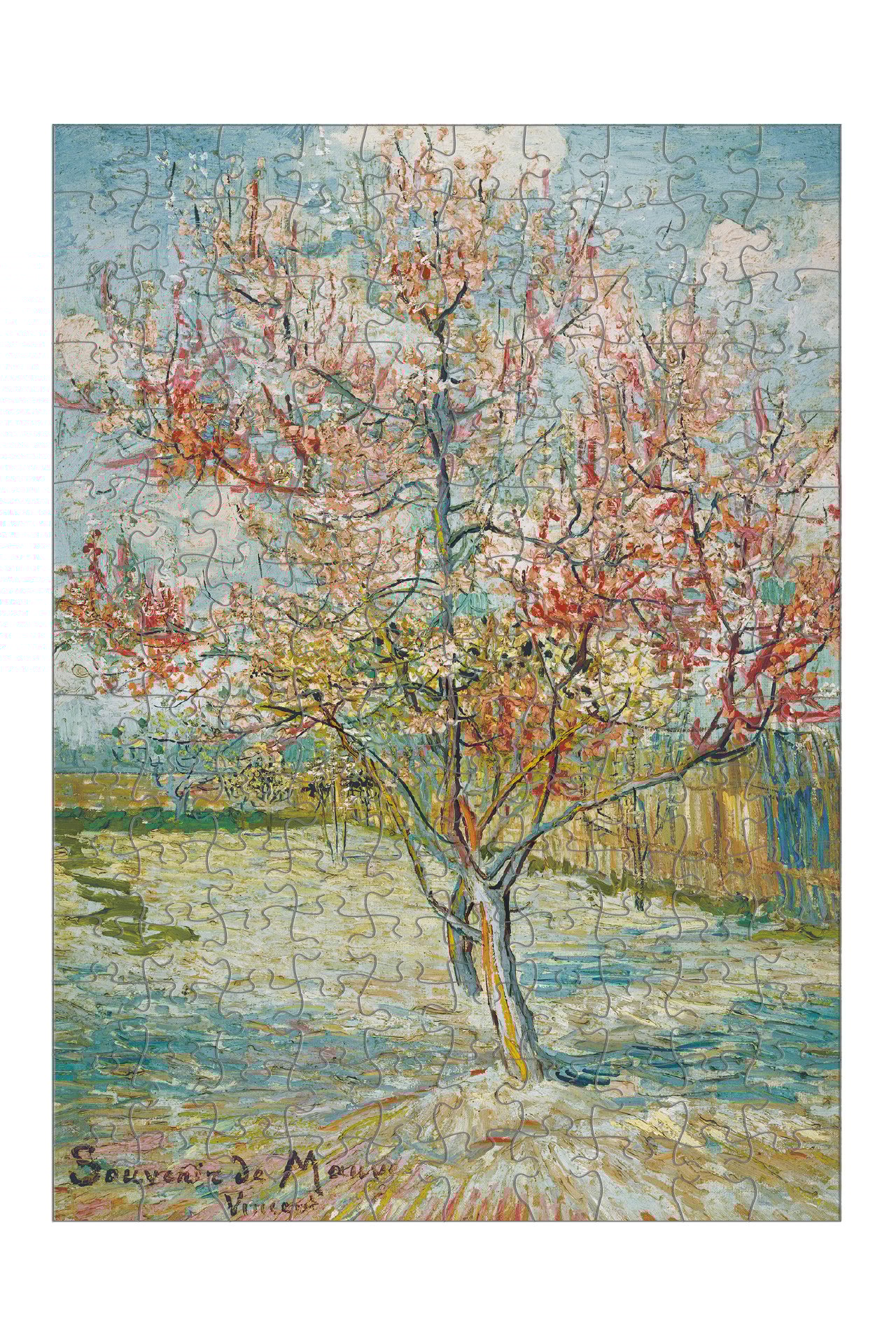 Minipuzzel van Vincent van Gogh, Perzik bloesem De puzzel van 150 stukjes wordt geleverd in een koker met schroefdop. Afmetingen: 10 x 15 cm Merk: Museum-merchandise.com
