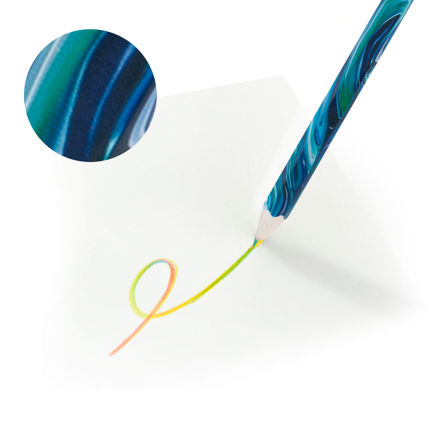 Multi-kleur regenboog kleurpotlood met een meerkleurige stift in de kleuren rood, blauw, geel en groen. Voor schrijven, schetsen en kleuren.