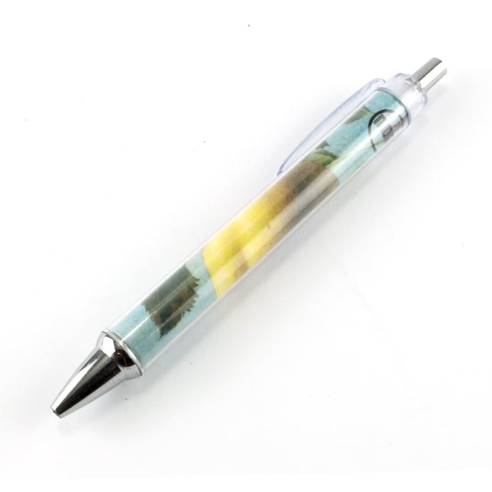Deze fotopen is voorzien van een kwaliteit afdruk van het schilderij Appel, gemaakt door kunstenaar Pyke Koch. De afdruk is ingelegd achter een transparante laag, schrijfkleur; blauw.