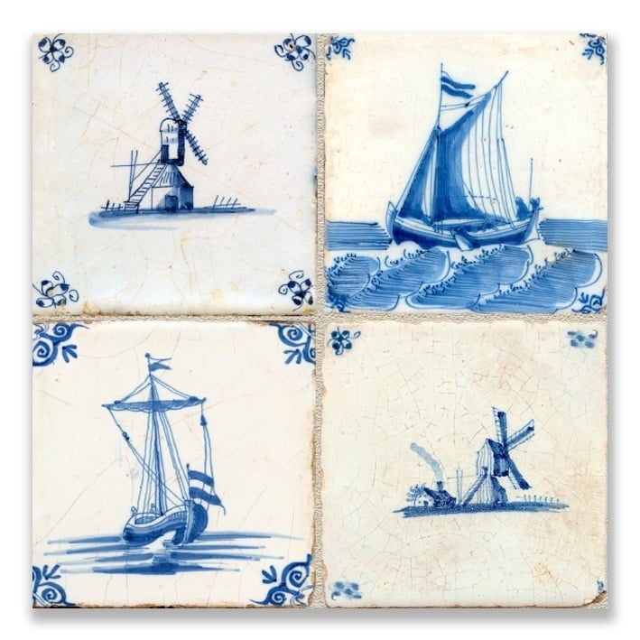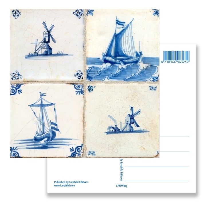 Ansichtkaart, Delfts blauwe tegels Tableau Molen/schepen