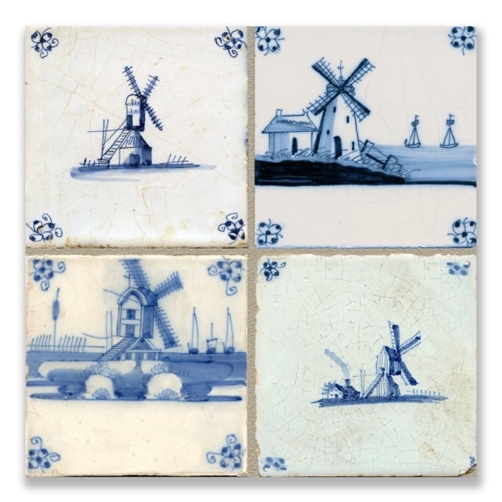 Ansichtkaart, Delfts blauwe tegels Tableau Molens