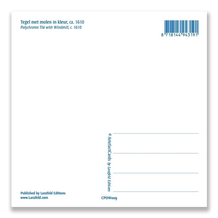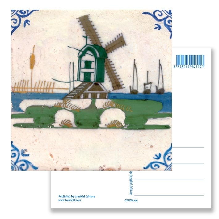 Ansichtkaart, Delfts Blauw Polychroom tegel met Molen