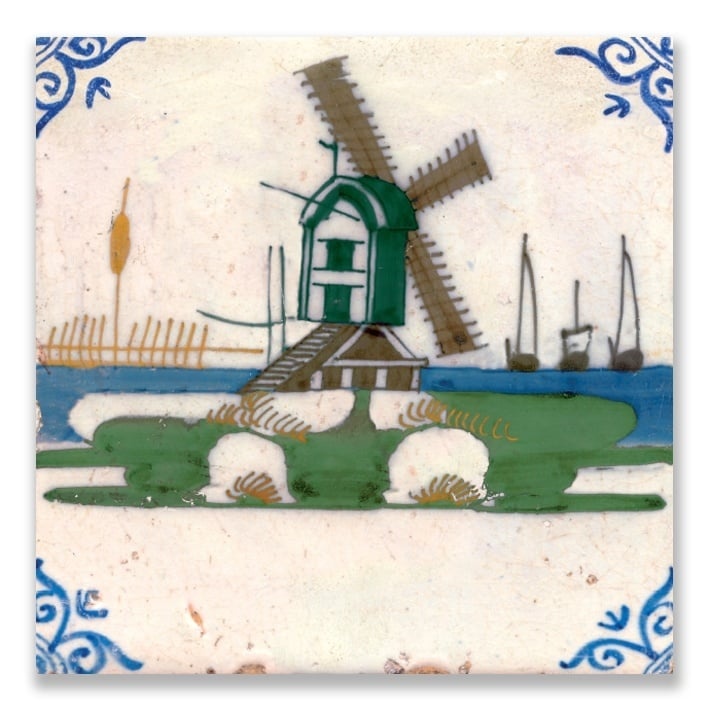 Ansichtkaart, Delfts Blauw Polychroom tegel Molen