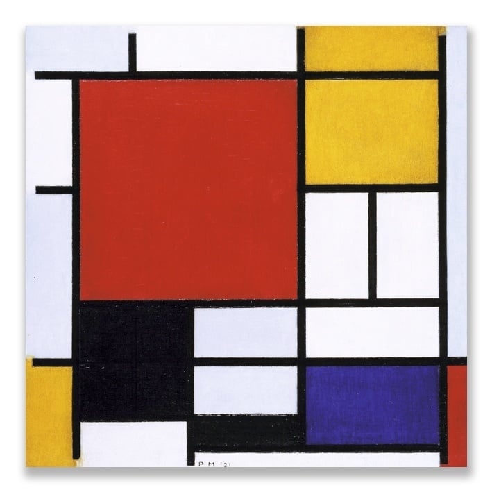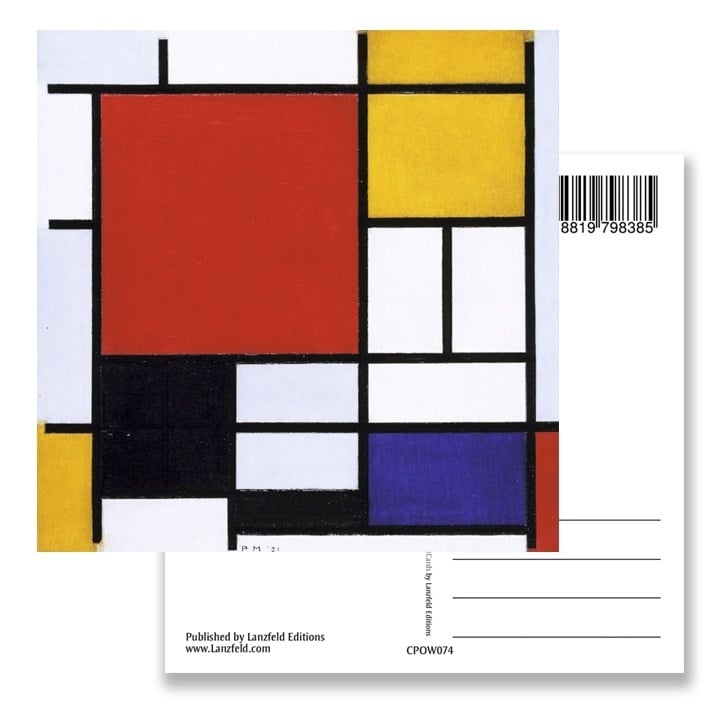 Postcards W, RT, Mondraan, Compositie met groot rood vlak