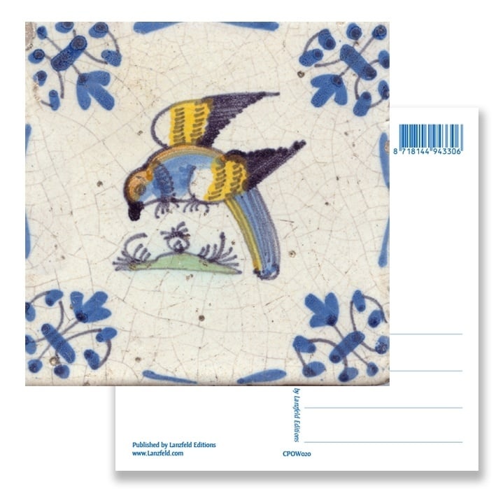 Ansichtkaart, Delfts blauwe tegel Papegaai