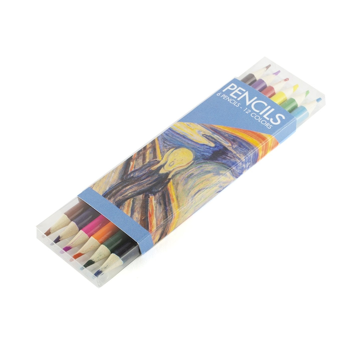 Een kleurpotloodset met 6 potloden en 12 kleuren.