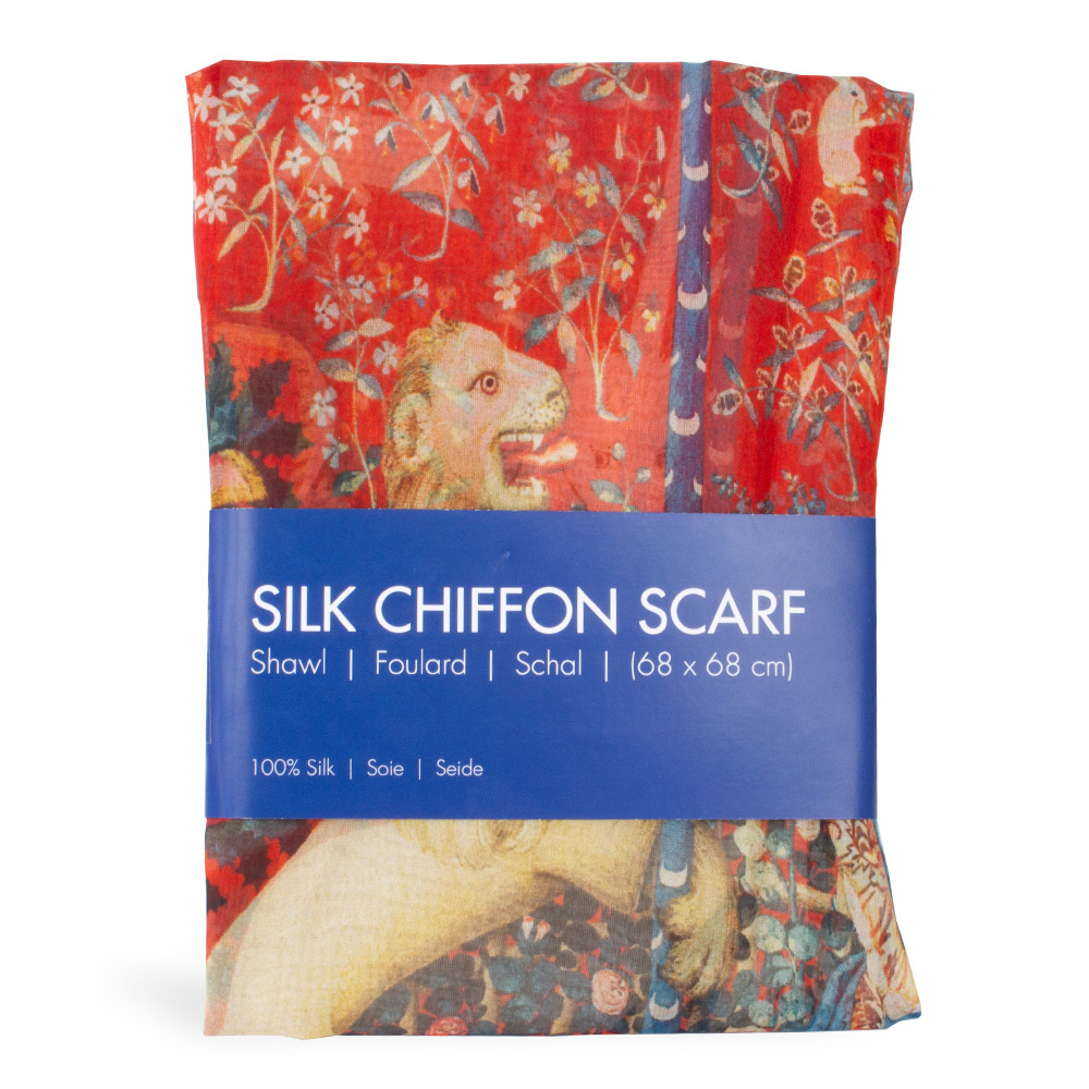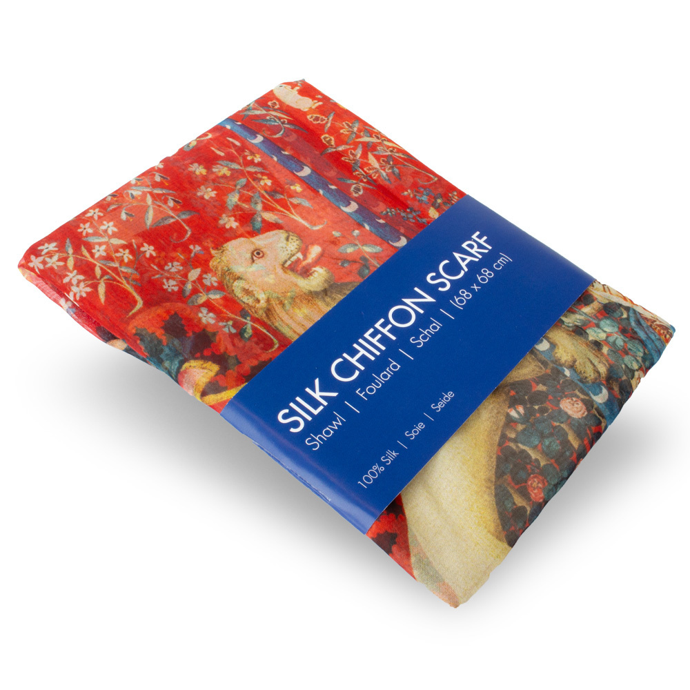 Sjaal zijde chiffon, 68x68 cm, Wandkleed Dame met de Eenhoorn