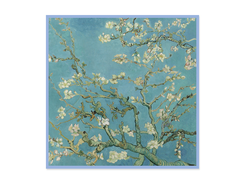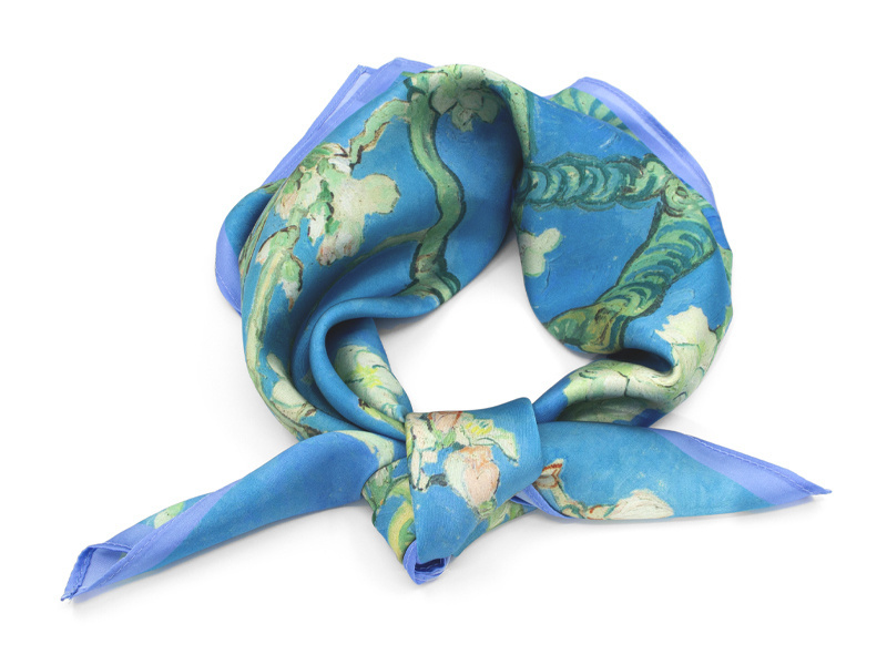 Deze vierkante sjaal/ bandana heeft een prachtig ontwerp van een van de bekendste schilderijen van de wereldberoemde Vincent van Gogh: De Amandel bloesem. De shawl is gemaakt van kunst zijde Polysilk ( 100% polyester). De sjawl is prettig draagbaar en va