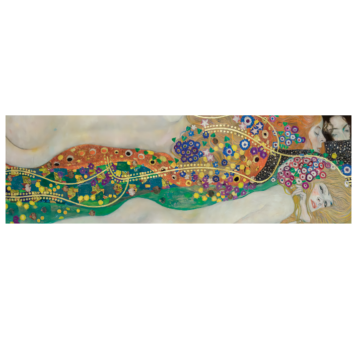 Een prachtige sjaal met een zeer verfijnde print en felle intense kleuren: Deze prachtige sjaal is ontworpen met een print van Klimts beroemde schilderij van Gustav Klimt, Waterslangen 2. De sjaal is gemaakt van kunstzijde (100% polyester). De sjaal is p
