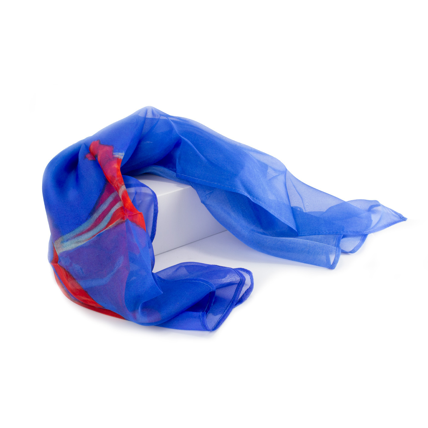 Een mooie sjaal met een zeer verfijnde opdruk en heldere intense kleuren. De sjawl is gemaakt van chiffon zijde. De sjawl is prettig draagbaar en valt mooi. De sjaal kan koud gewassen worden, met de hand.