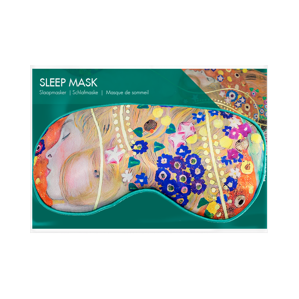 Een verduisterend oogmasker, met verstelbare hoofdband en zachte vulling, voor totale ontspanning en een goede nachtrust. Met een afbeelding het wereldberoemde schilderij van Klimt.