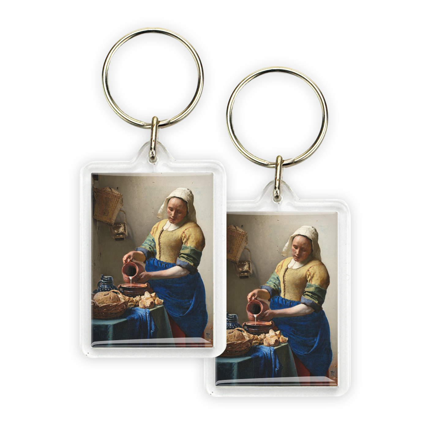 Niet te missen, deze prachtige sleutelhanger met kwaliteitsopdruk van een bekend werk van meesterschilder Johannes Vermeer; Het melkmeisje