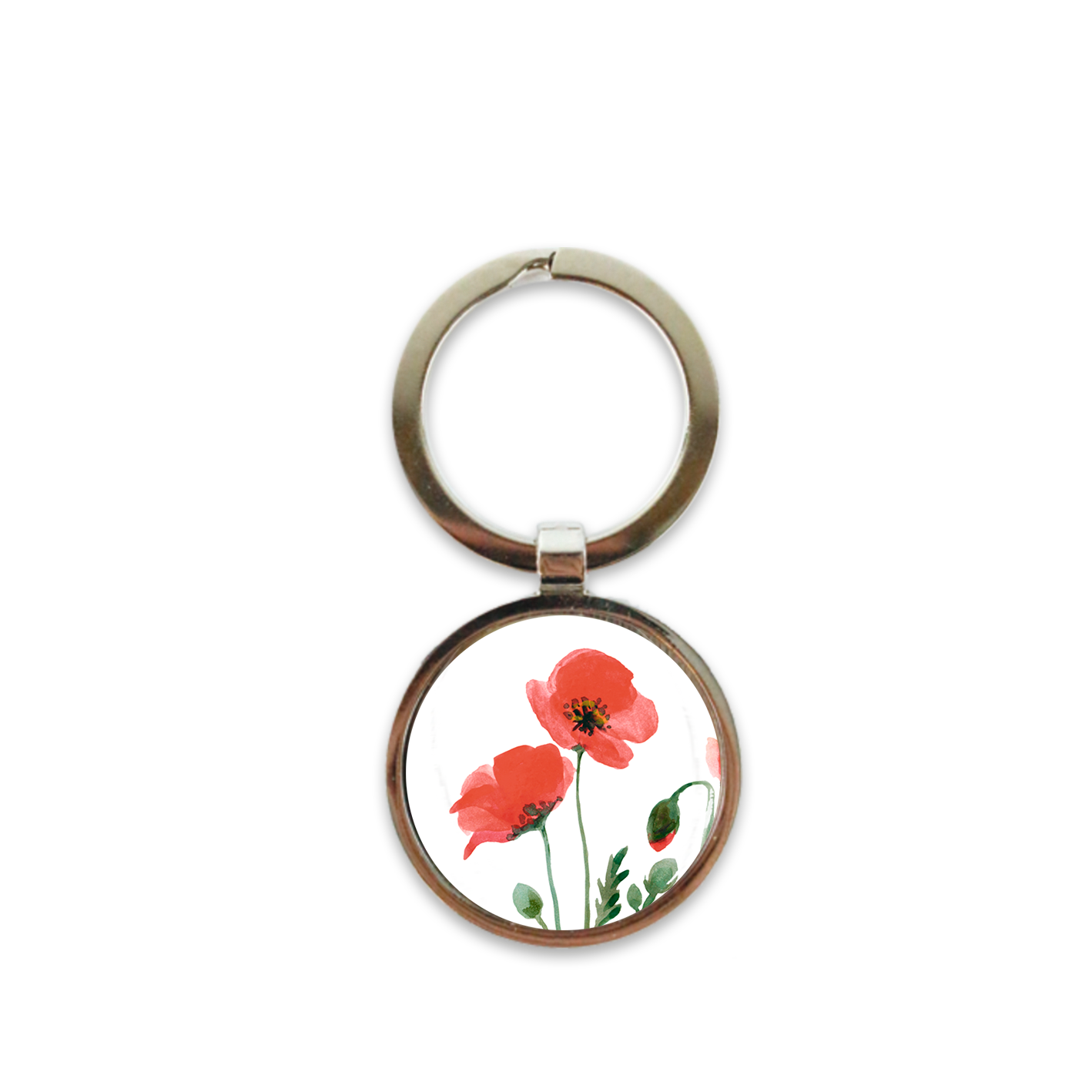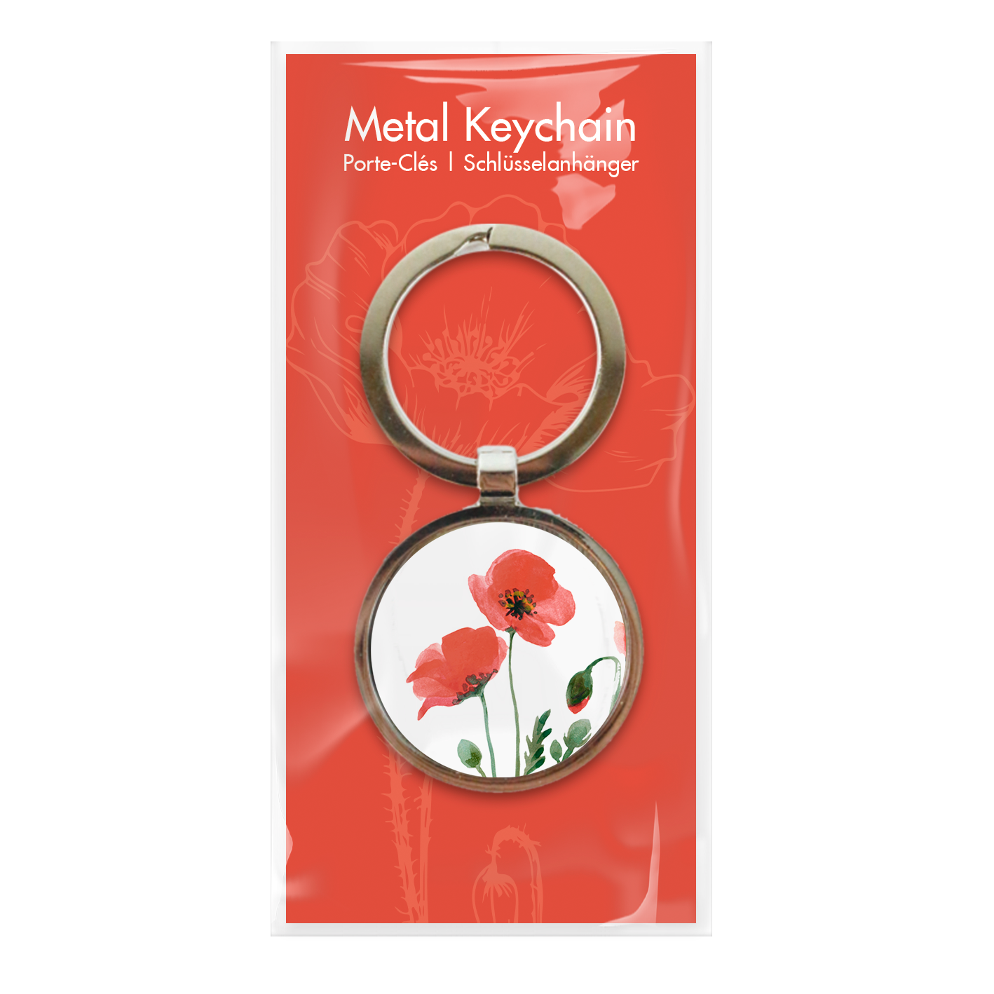Sleutelhanger metaal zilverkleurig, Klaprozen