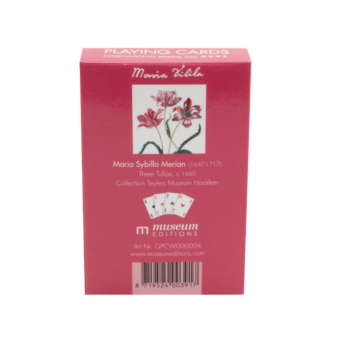 Een set speelkaarten met de reproductie van een schilderij van Tulpen gemaakt door Merian. 56 kaarten, Bridgekaarten, kaartspel