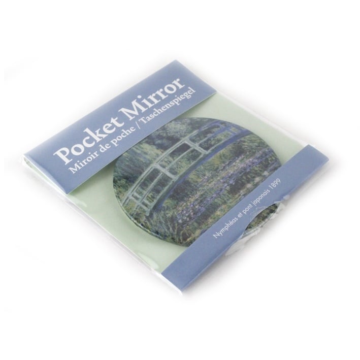 Rond spiegeltje, handig om mee te nemen bijvoorbeeld voor het bijwerken van make-up. Dit spiegeltje op zakformaat is verpakt in plastic en voorzien van een prachtige opdruk van het meesterwerk van Monet.