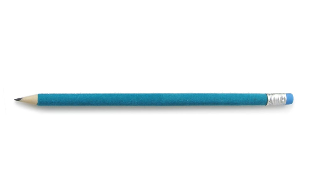 Zacht fluwelen potlood, turquoise. Grijs HB potlood om mee te schrijven en te schetsen, met een turquoise fluwelen textuur en een gum op het uiteinde. Kies uit 12 verschillende kleuren.
