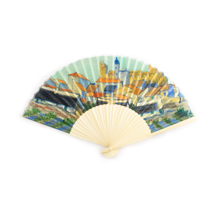 hand waaier, Gezicht op Saintes-Maries-de-la-Mer, Van Gogh